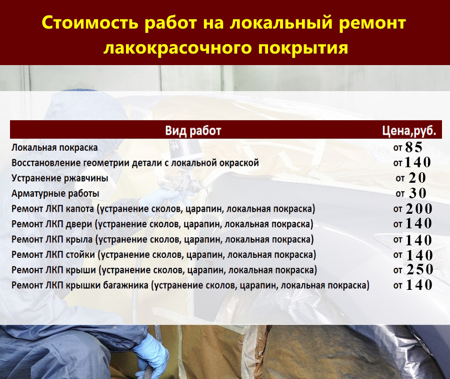 Данная процедура предполагает устранение всех старых слоёв эмали и грунтовки, после чего они восстанавливаются. В других областях заводское покрытие остаётся нетронутым. Во время этих работ не проводится разборка автомобиля. Для сушки вновь нанесённого слоя лака мы используем инфракрасное излучение для уменьшения временных затрат.